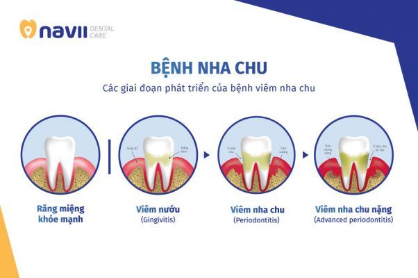 Viêm nha chu là một trong những bệnh lý răng miệng phổ biến. Triệu chứng này xuất hiện do tình trạng viêm lợi, gây ra bởi những vi khuẩn trong cao răng. Nếu không được điều trị kịp thời, bệnh nha chu sẽ dẫn đến răng lung lay và rụng răng. Viêm nha chu xảy ra qua 3 giai đoạn: